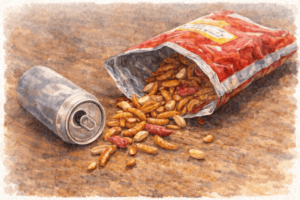 40代後半でした。経済的にも、アルコールなんて買ってる場合じゃないのに、自分の食事を抜いてでもビールを買い、柿の種やポテトチップとアルコールで、酔いつぶれて寝る生活を送っていました。